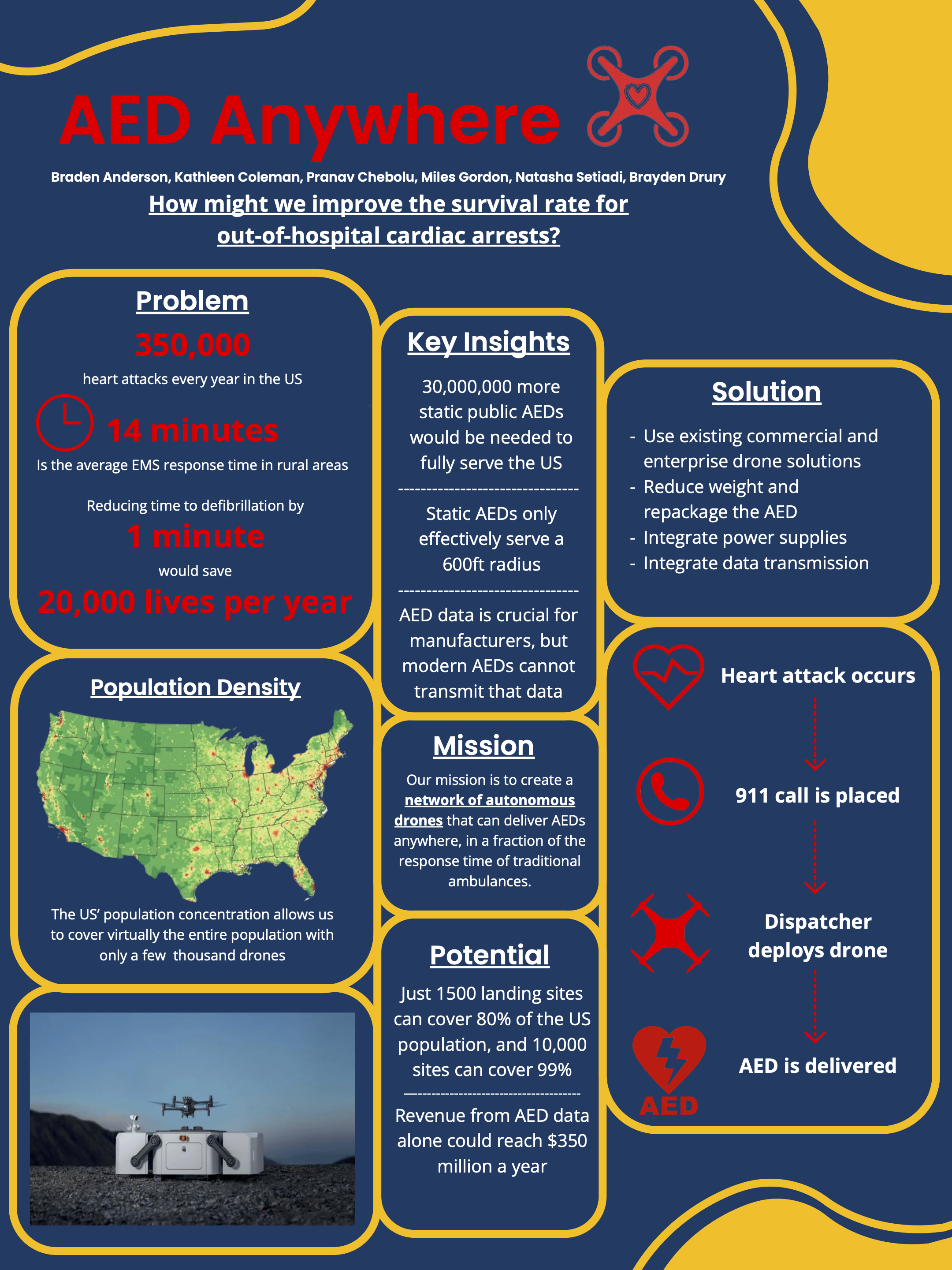 As a member of the Georgia Tech Grand Challenges Living and Learning Community, I worked on the AED Anywhere project with a group of my peers.